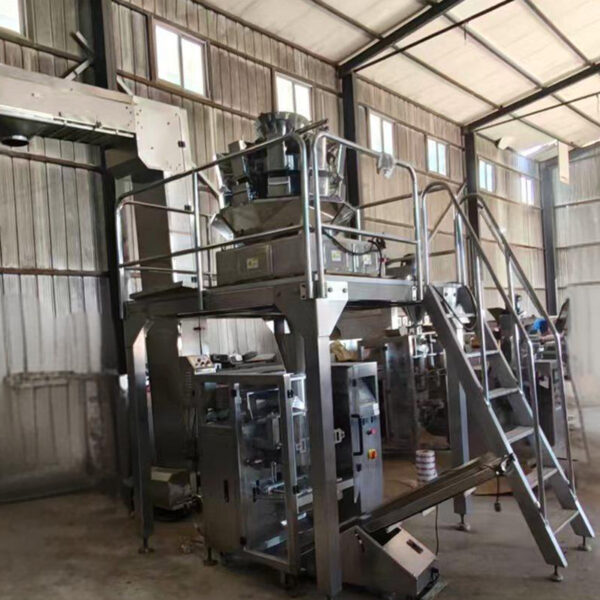 Materials are conveyed from the storage bin to the weighing heads of the multi-head weigher via a conveyor. The vibrator ensures that the materials are evenly distributed on the weighing heads. Each weighing head is equipped with a load cell, which can detect the weight of materials in the weighing hopper in real-time. Components such as the PLC controller and touchscreen display in the control system process the weight data from each weighing head based on set parameters like precision and capacity. Through a specific algorithm, it calculates which combination of materials from the weighing heads is closest to the target weight, then controls these weighing heads to open their discharge gates, unloading the materials into the packaging bags below. Subsequent operations such as sealing are then carried out by the packaging machine.